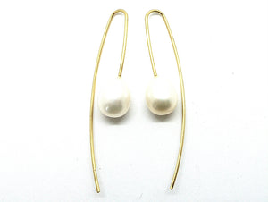 Forgyldte lange øreringe med store hvide ferskvandsperler